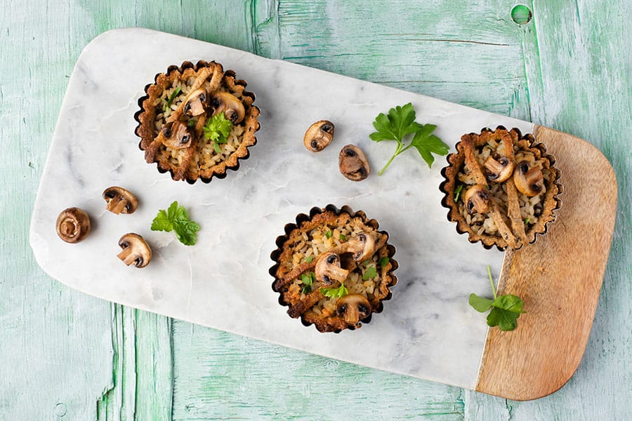 5. Lisää pyöreisiin paloihin keskelle runsas ruokalusikallinen ohrapuuroa ja rypytä piirakan muotoon.