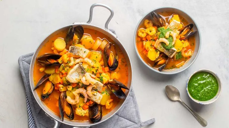 6. Lisää ne keittoon yhdessä katkarapujen kanssa. Anna poreilla, kunnes kala on kypsää.